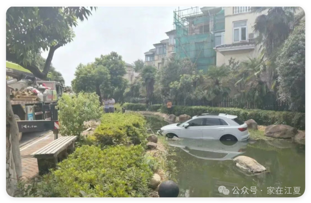 事發(fā)江夏一小區(qū),一轎車直沖小區(qū)內(nèi)池塘...